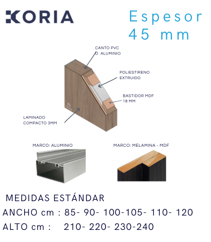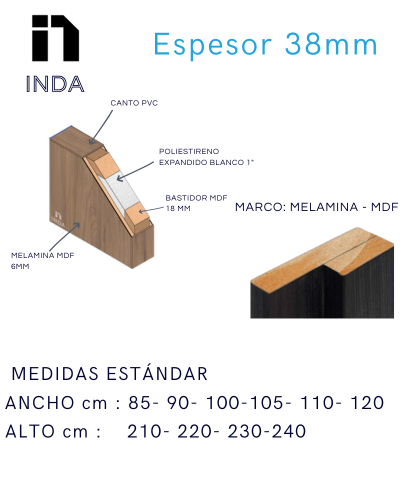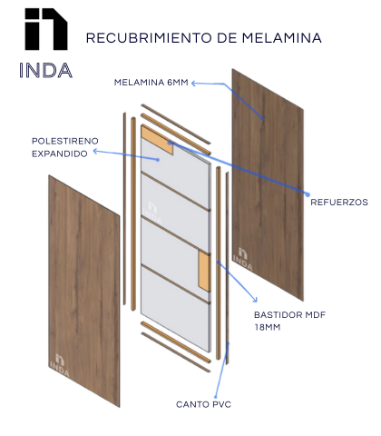 Puerta de acceso con recubrimiento de melamina 6mm. Poliextireno expandido, 8 colores de línea. Bastidor MDF, Canto PVC